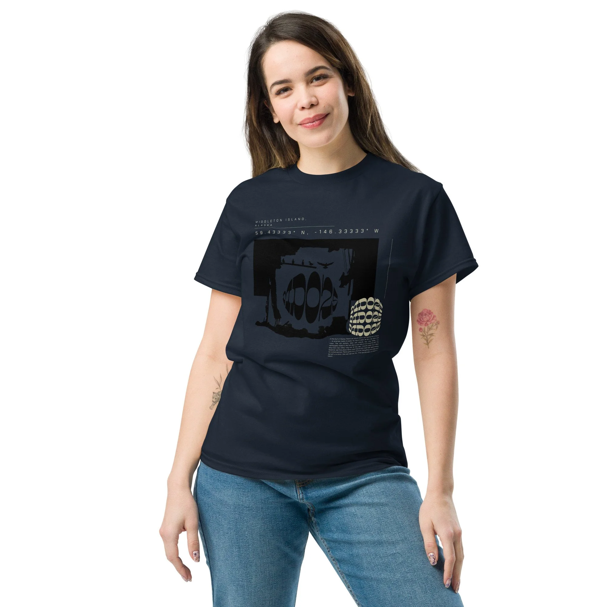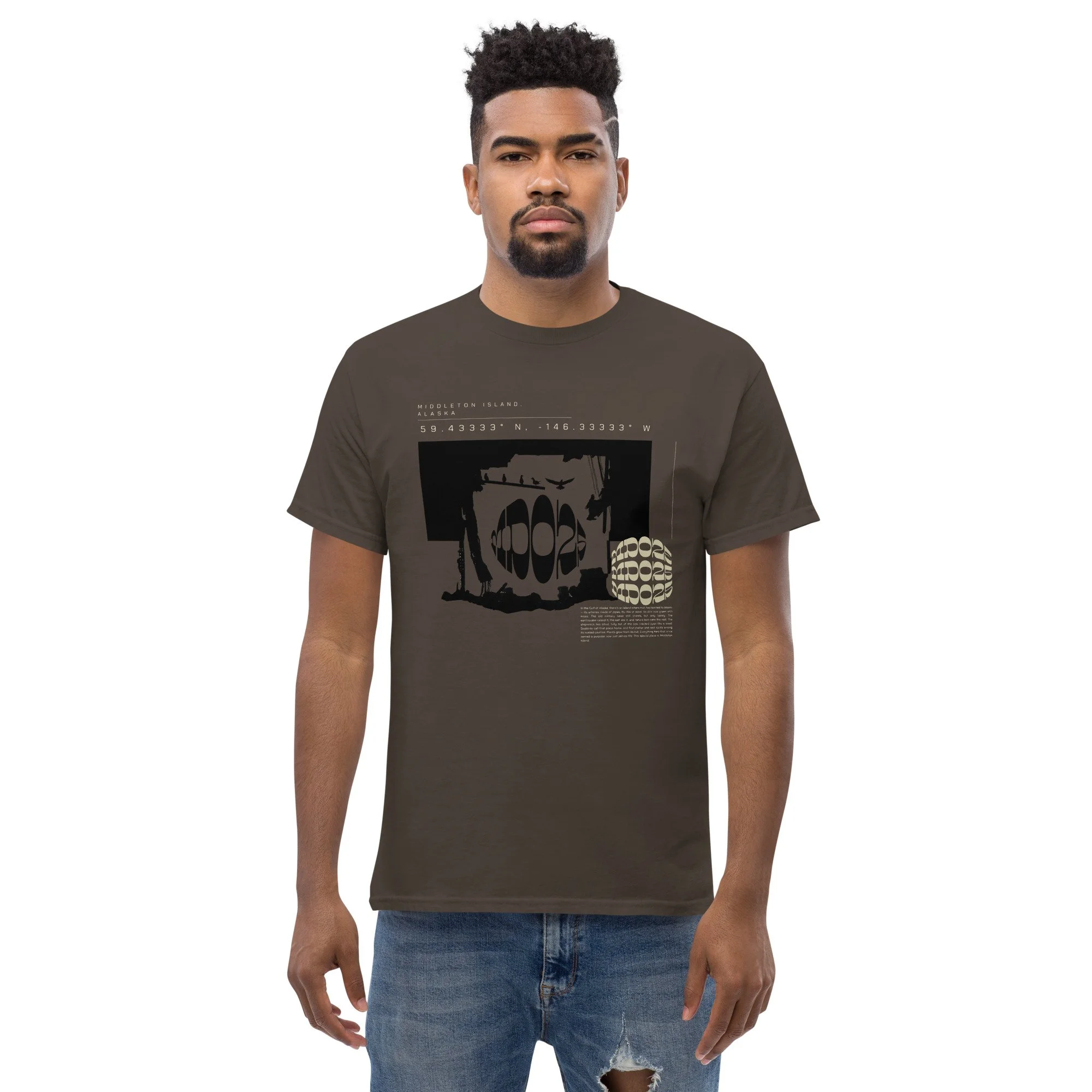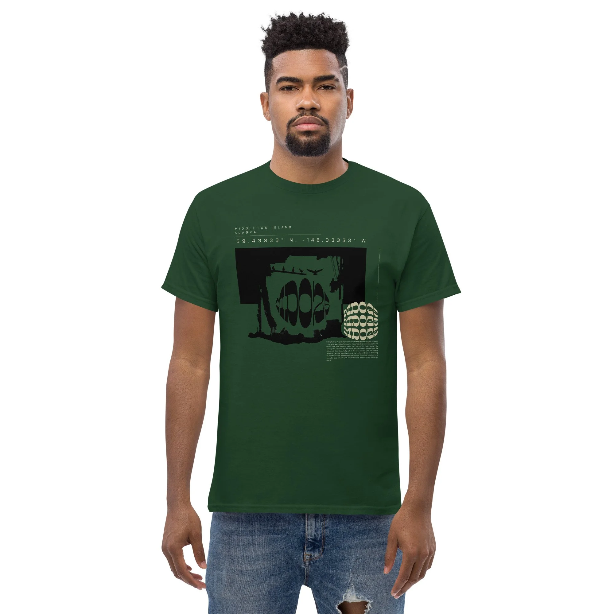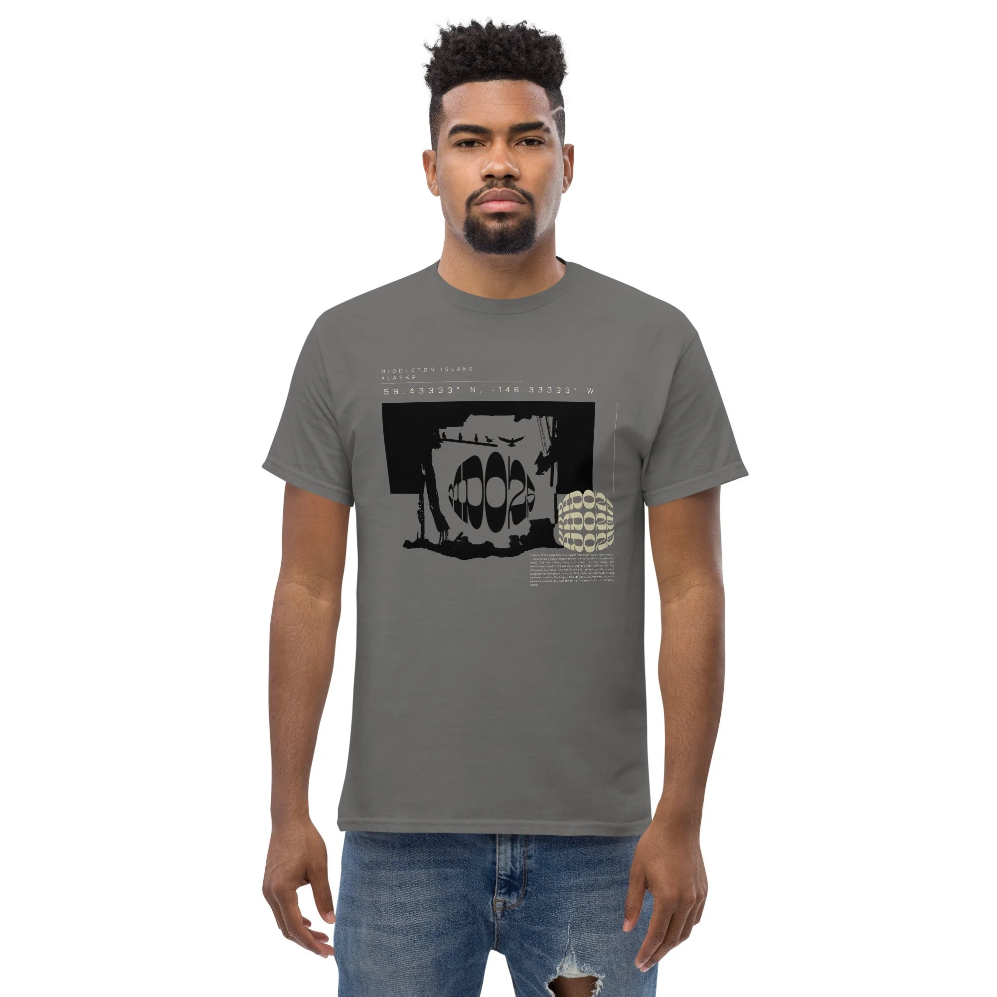 The 100% cotton unisex classic tee will help you land a more structured look. It sits nicely, maintains sharp lines around the edges, and goes perfectly with layered streetwear outfits. Features a digitally stylized picture from the Middleton Island portfolio.