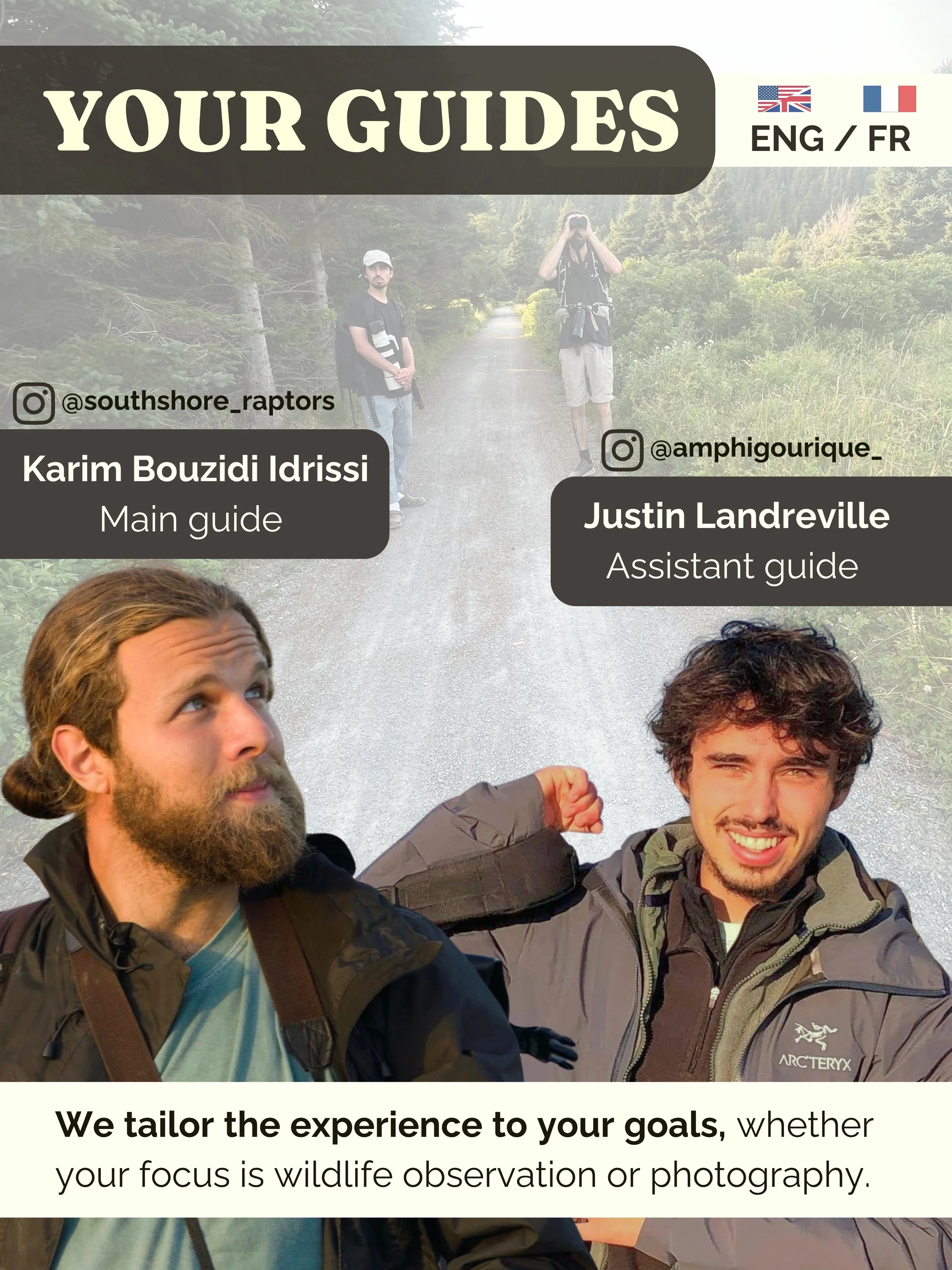PHOTOGRAPHY: This tour offers full photography support from your guides, who are professional wildlife photographers. They will share their expertise in all aspects of photography, from camera settings and technical tips to composition, lighting, and post-processing. Guidance is personalized to your goals, whether you are looking to improve your skills, capture stunning landscapes, or photograph the incredible birds of Tadoussac in action.